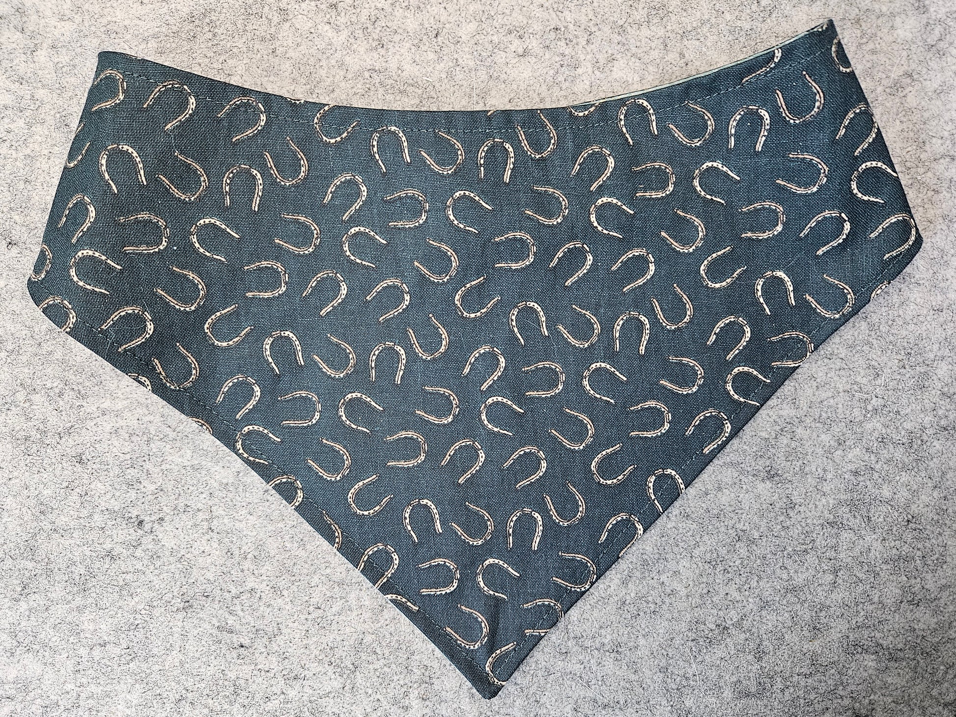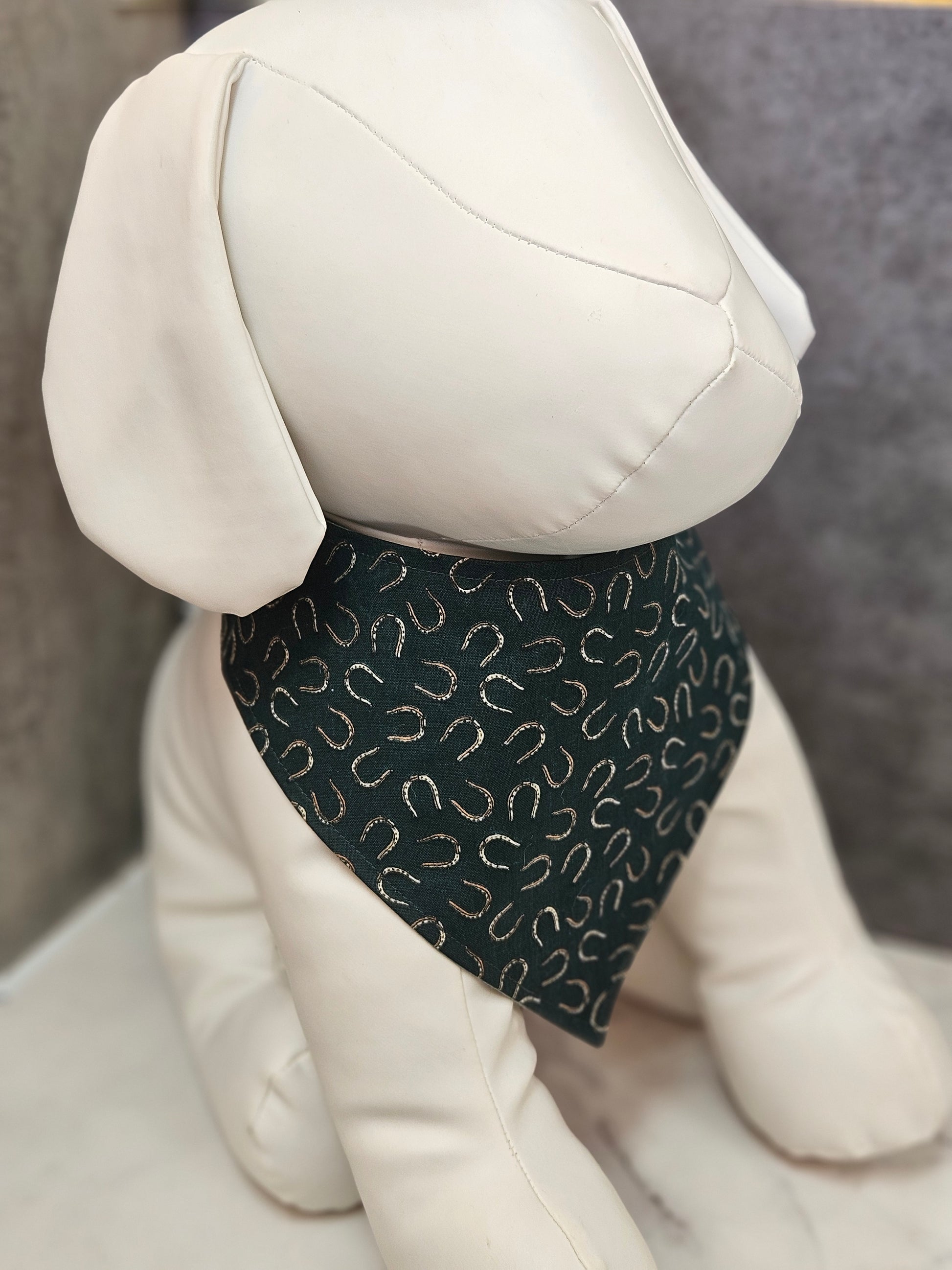Elevate your furry friend's style with the Good Luck Horseshoes Snap-On Dog Bandana, a perfect blend of charm and convenience. Designed for pet owners who value both fashion and practicality, this reversible bandana features an eye-catching horseshoe pattern symbolizing good fortune and positivity.